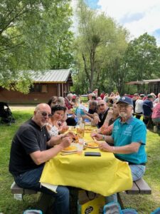 Tout le monde est bien couvert, ce n’est pas encore le beau temps !!!  On aurait aimé un peu de soleil pour accompagner ce pique-nique, heureusement l’ambiance était au rendez-vous.
